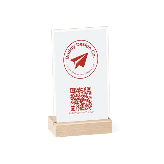 Personalized Acrylic Branding Sign with Wooden Stand | Custom Design | Logo & QR Code |