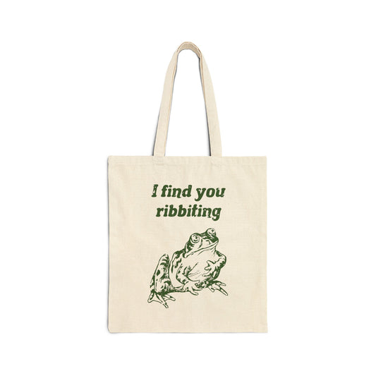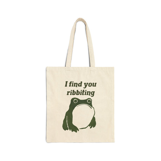 I Find You Ribbiting Frog Tote Bag | Cute Frog Illustration, Pun Tote