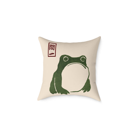 Unimpressed Frog Throw Pillow-Grumpy Frog Pillow-Japanese wabi sabi Matsumoto Hoji, Canvas Pillow, Vintage Style Home Decor, Grumpy Toad