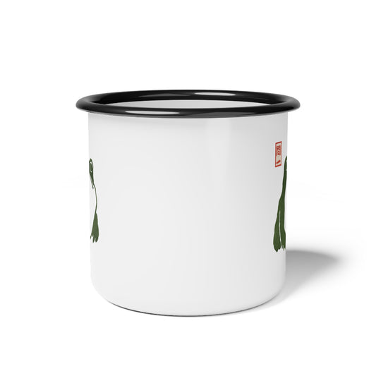 Unimpressed Frog Enamel Camp Mug - Grumpy Frog Cup- Japanese Aesthetic Wabi Sabi Matsumoto Hoji, 12 oz Adventure Cup, Vintage Mug