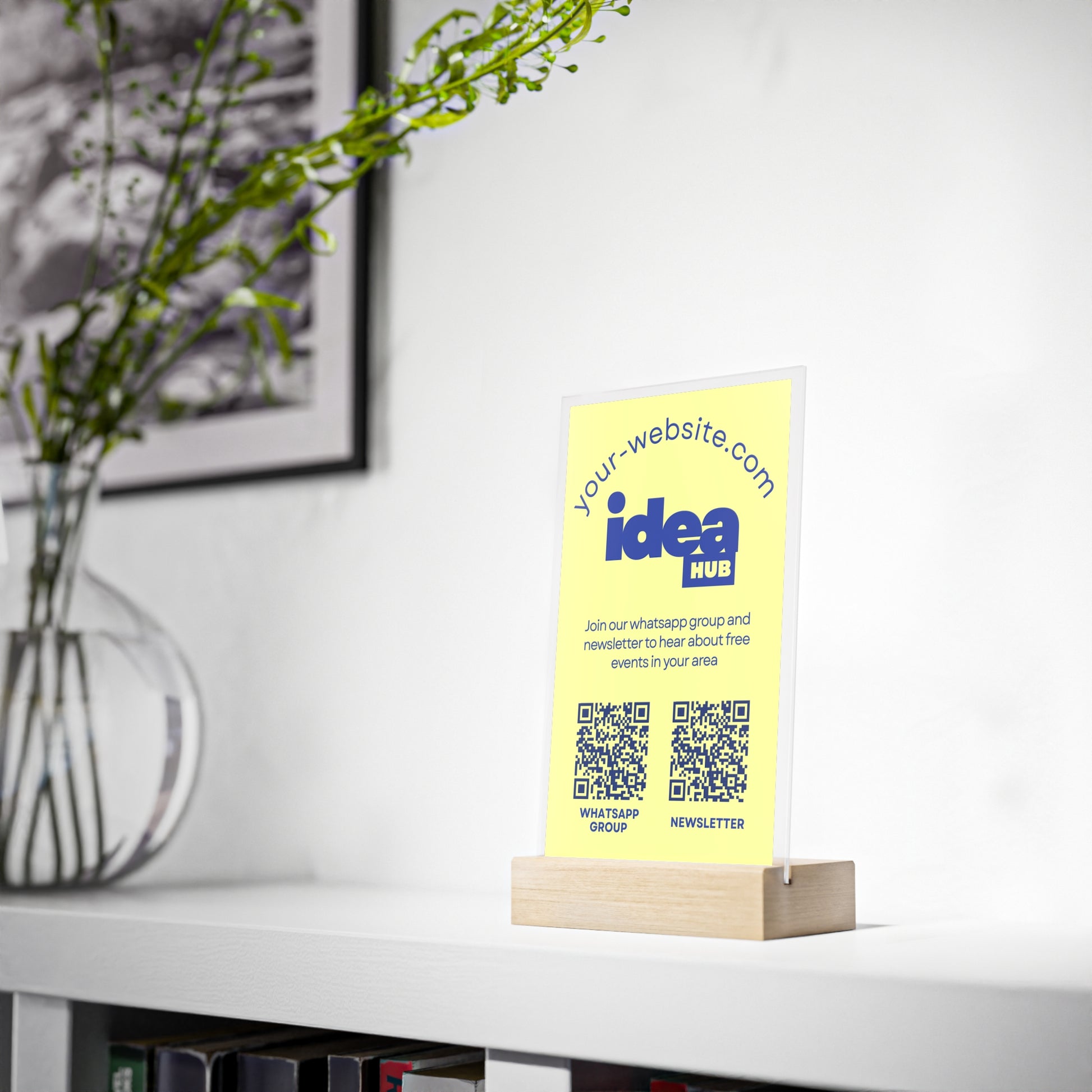 This Personalized Acrylic Picture Sign with Wooden Stand is the perfect way to create clear branding moments in offices, storefronts, and networking events. Add your logo, branding, and the URL you want your QR code to link to—and we’ll handle the rest.