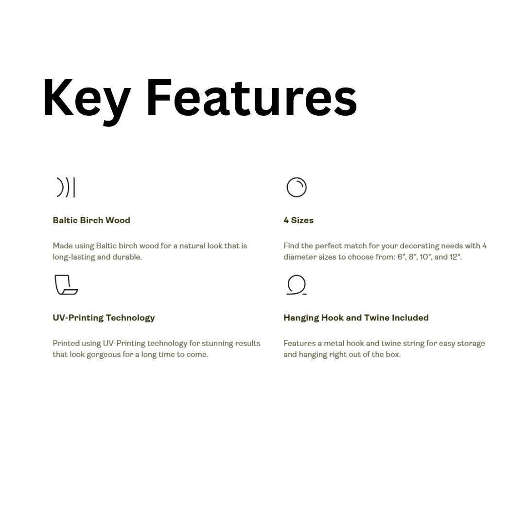 Add a rustic touch of Bohemian charm in any business with this wooden sign. Great background object for videos! Available in 4 sizes to best match your decorating needs and space, each sign is made with highly durable Baltic birch wood for natural looks that last. The design is printed using advanced UV-printing technology while each sign ships with a twine string and a hanging hook included.