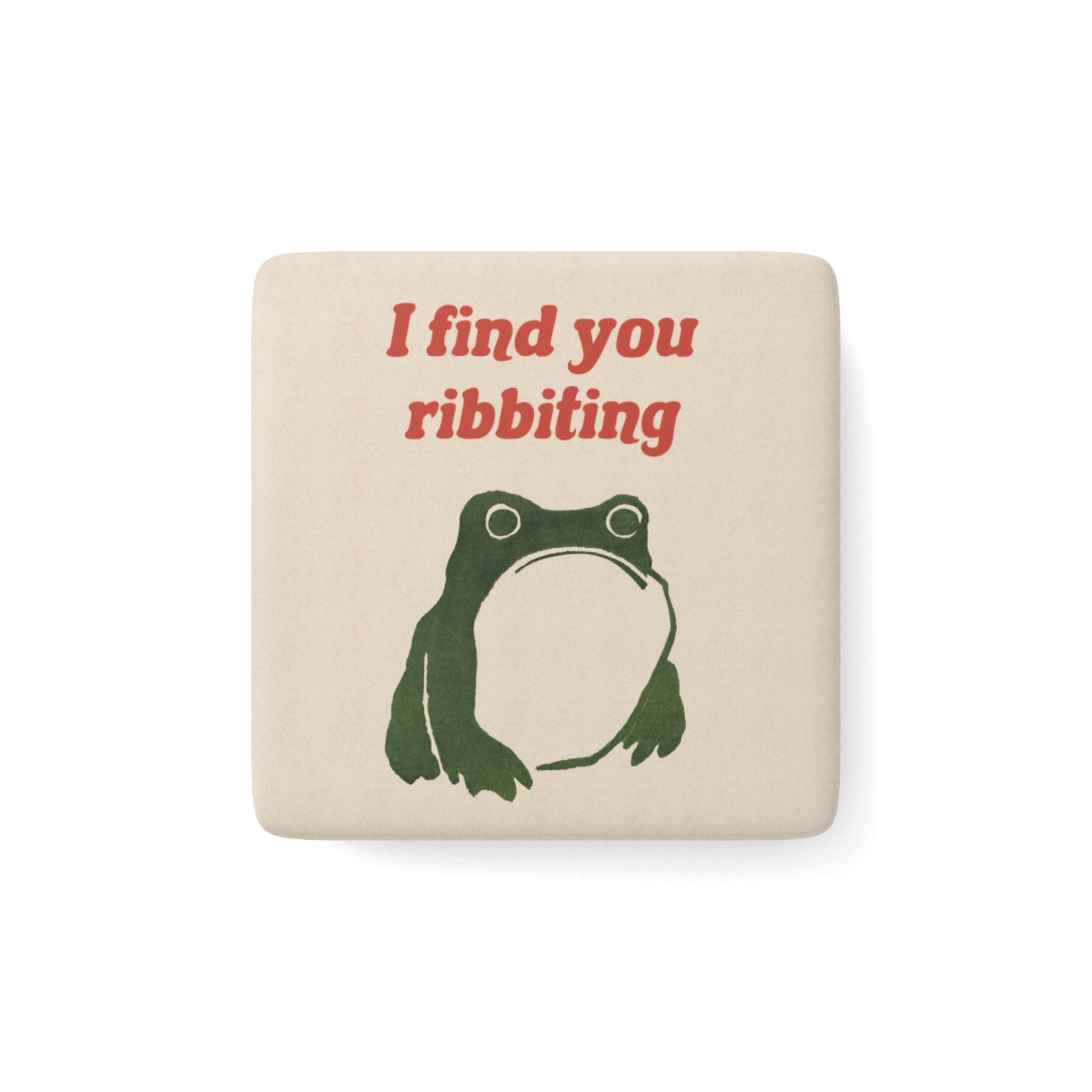 I Find You Ribbiting matsumoto hoji frog Porcelain Square Magnet |Frog Pun Vintage Wabi Sabi|Japanese Frog |Valentines Day gift (Red, Green)