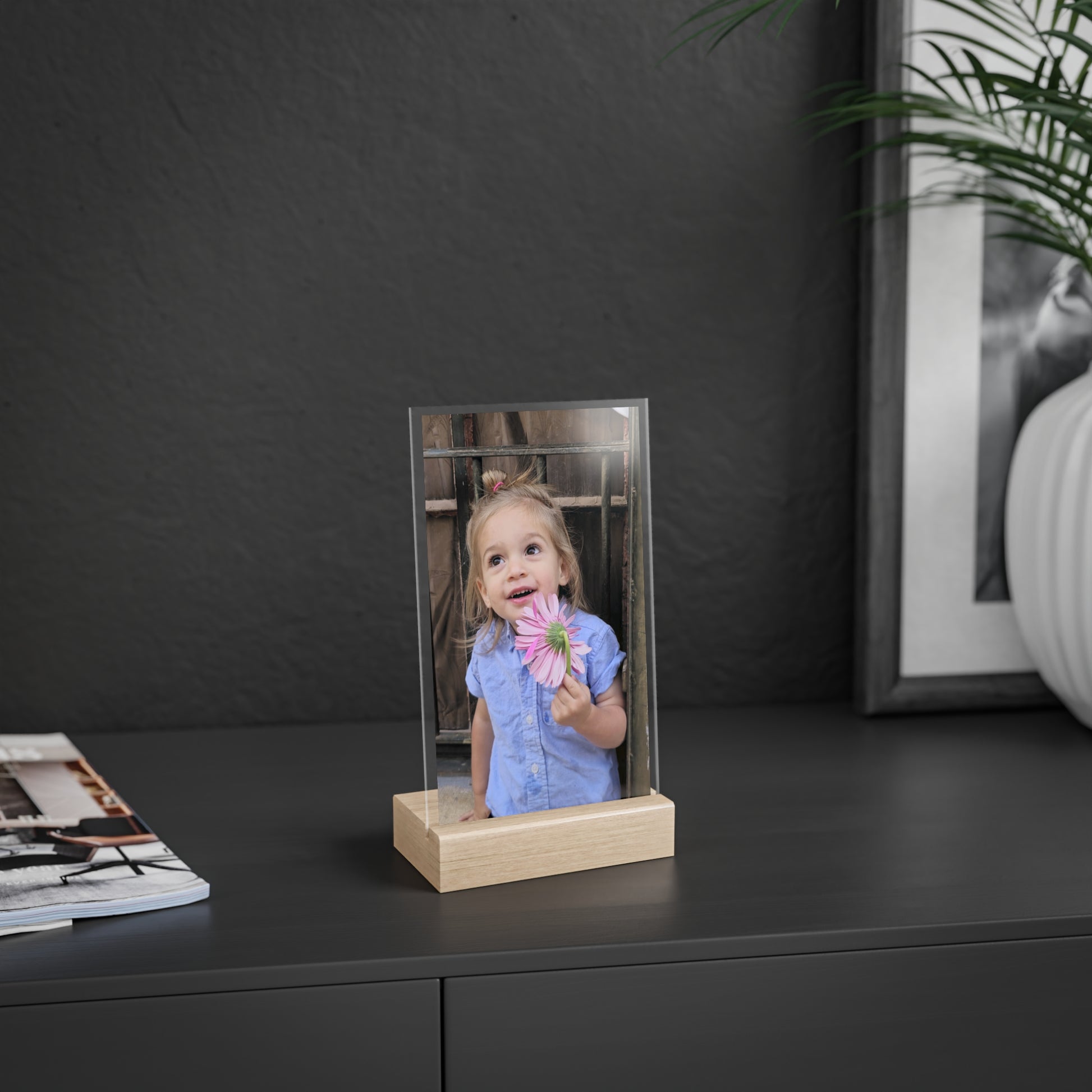 This acrylic sign, mounted on a warm wooden stand, turns a single photo into a quiet showpiece. The clear 3mm acrylic gives images depth and a jewel-like clarity, while sustainably sourced wood adds an organic, lived-in feel. Printed with vibrant, modern inks, colors stay bright and details remain crisp — whether it’s a tiny keepsake snapshot or a striking portrait. Two compact sizes fit shelves, mantels, and bedside tables. Made from high-quality blanks sourced from Germany, each piece reads as a small, thoughtful display that blends clean, contemporary materials with natural texture.